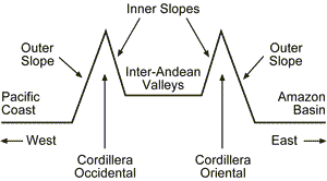 Geography (From Chapter 2) Imagine! A country where the land is higher than the clouds. ![]() Ecuador is located in the northwest of South America; it lies along the Pacific coast and the equator. It is one of the smallest nations of the continent, with a surface area of approximately 270,000 square kilometers (104,000 square miles). Its neighbors are Colombia to the north and Peru to the south. The principal topographic feature of the country is the Andes, a massive mountainous spine that runs from north to south. The Andes Mountains divide the Ecuadorean mainland into three regions, from west to east: the Pacific coast, the highlands, and the Amazon basin. A fourth geographic region is made up of the Galápagos Islands, situated 1000 kilometers (620 miles) offshore (directly along the equator). Ecuador is divided into twenty-two provinces, which in turn are subdivided into cantons and parishes for local administration. Andean Highlands. Two roughly parallel ranges of the Andes, connected by transverse ridges, form the Ecuadorean highlands known as La Sierra. In the northern Sierra, ten snowcapped volcanic summits tower more than 5000 meters (16,500 feet) above sea level. These volcanoes are set some distance apart from one another, each majestically dominating its own territory. In the southern Sierra the mountains are older, lower, more eroded, and nonvolcanic, resulting in a confused topography of bare sculpted peaks and deeply incised valleys. ![]() The Ecuadorean geographer Dr. Nelson Gómez describes the high Andes as a world of striking contrasts: "massive glaciers on the equator, snow and volcanic steam, dense fog and brilliant sunshine, severe cold and intense heat." The two main ranges of the Andes are the Cordillera Occidental (the western range) and the Cordillera Oriental (the eastern range). Between them lies a series of gentle green valleys between 2000 and 3000 meters (6500 and 10,000 feet) above sea level. These inter-Andean valleys are densely populated and intensively cultivated right up the mountain slopes, producing fruits, vegetables, grains, and dairy products. A wilder landscape is to be found on the outer slopes of the Andes, which are covered with cloud forests known as ceja andina (eyebrows of the Andes). They are perpetually shrouded in the mists that rise from the tropical lowlands toward the icy mountaintops. Pacific Coast. The coastal region, known as La Costa, is a broad alluvial plain drained by several rivers, including the Guayas (the largest river on the west coast of South America). Much of La Costa is densely populated and given over to large-scale agriculture, with corporate enterprises producing bananas and shrimp for the export market as well as other crops for local consumption. Amazon Basin. The eastern lowlands, known as El Oriente, are part of the enormous Amazon River basin, which covers much of tropical South America. Low mountain ranges at the foot of the Andes, tropical rainforest, and large navigable rivers to the east are the principal geographic features of continental Ecuador's least densely populated region. Galápagos Islands. These islands of volcanic origin, independent from the mainland, sit near the junction of the Nazca and Cocos tectonic plates. There are eight main islands, six smaller islands, and many islets spread over a large expanse of ocean. Since trekking is not permitted in Galápagos, we will not describe them further in this book. |